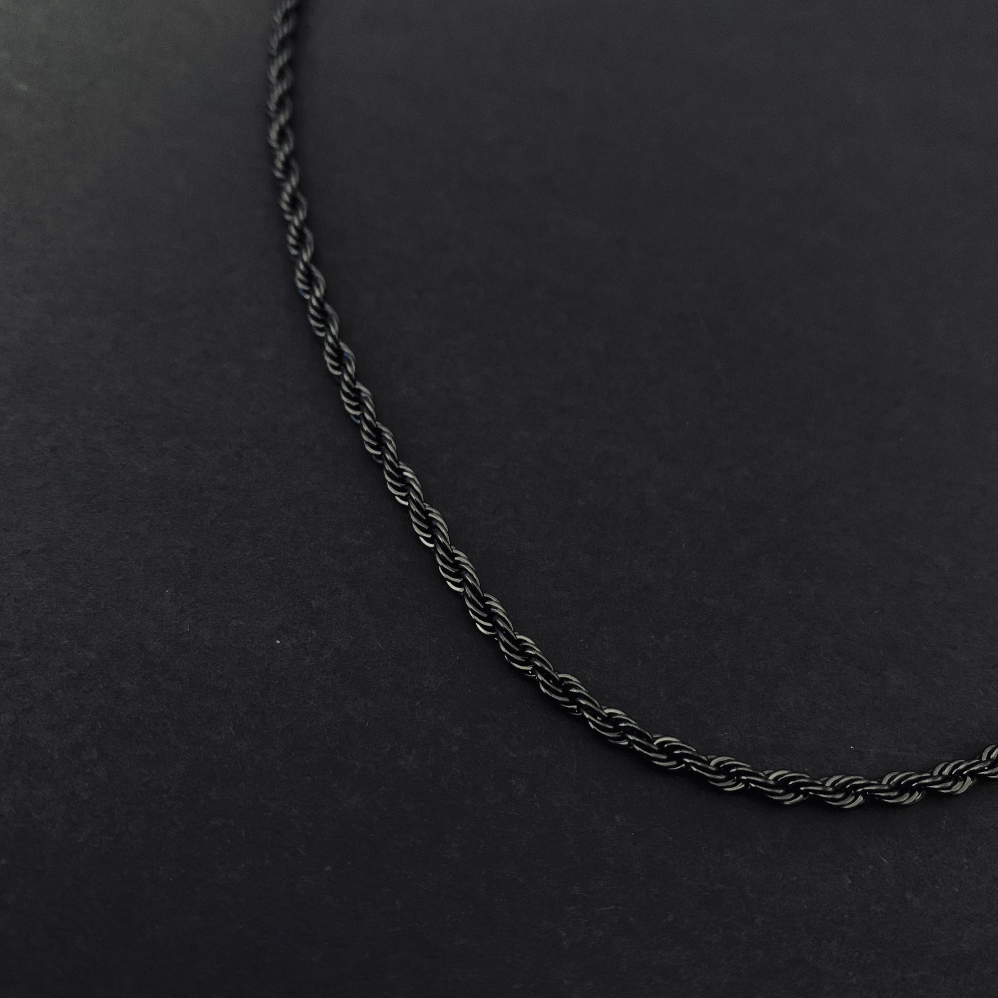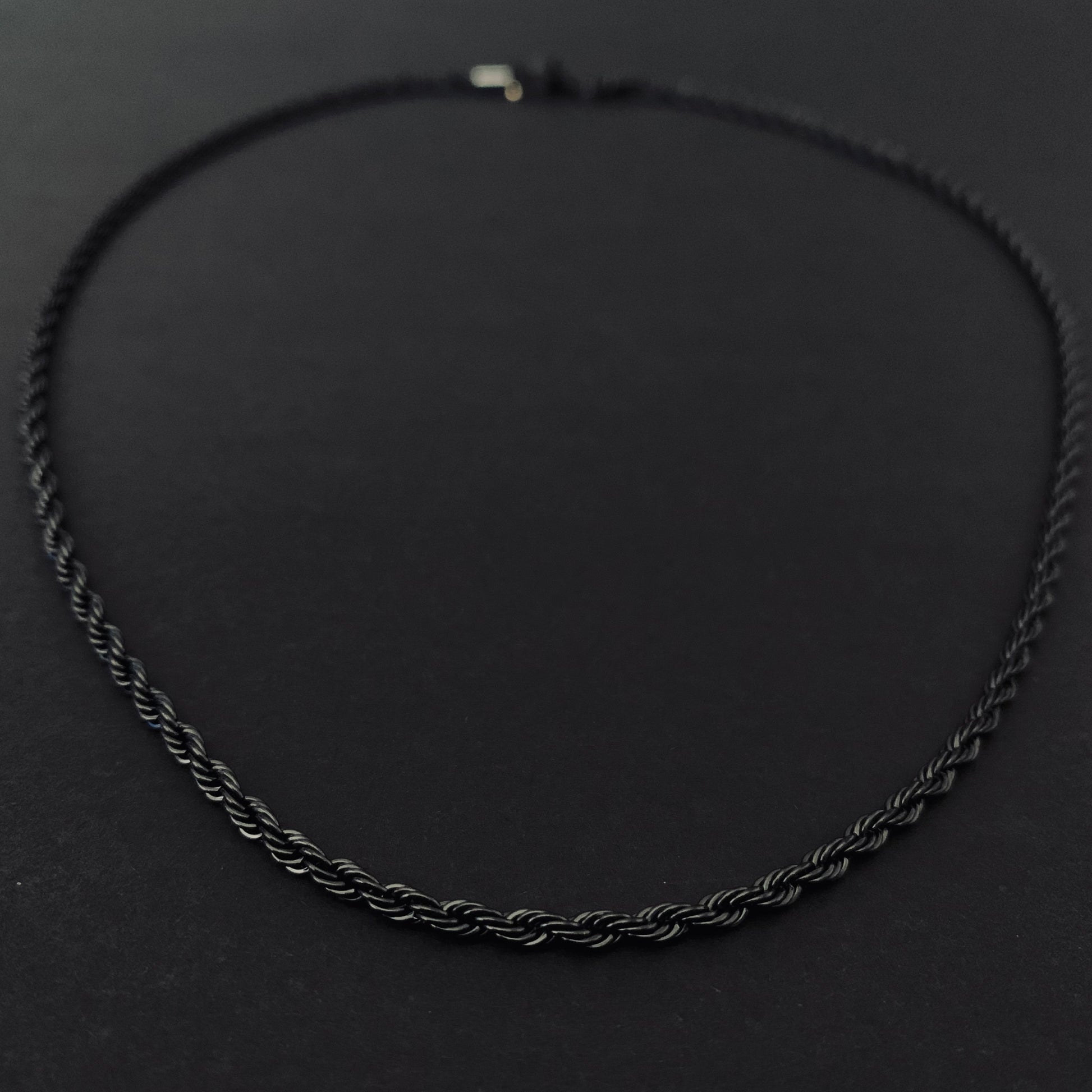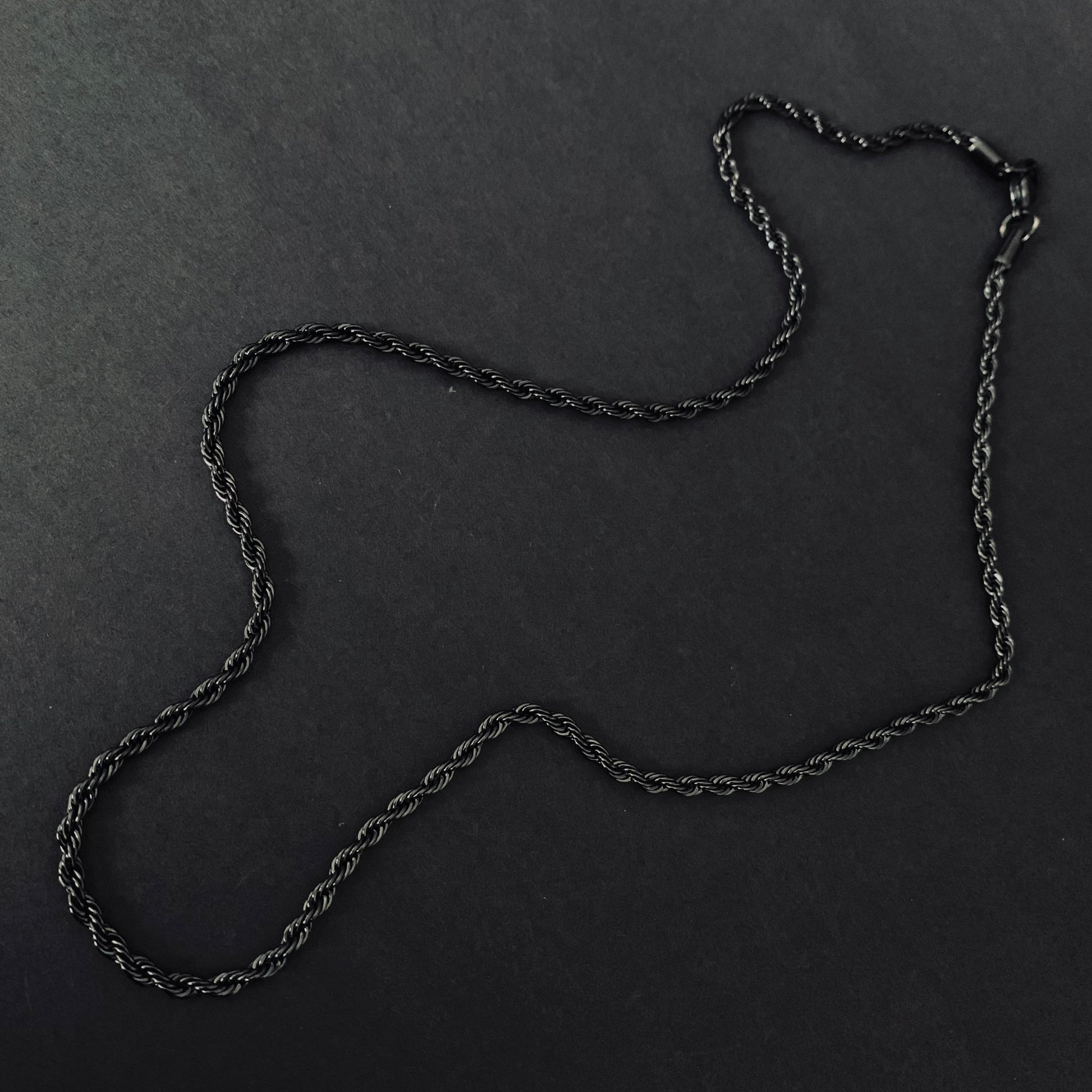 Crafted from durable 201 stainless steel with a sleek PVD black coating, this rope chain delivers serious style without compromise. Measuring 500mm in length and 3mm in width, it strikes the perfect balance between presence and wearability. Built to last, resisting tarnish and corrosion for everyday wear that holds up.