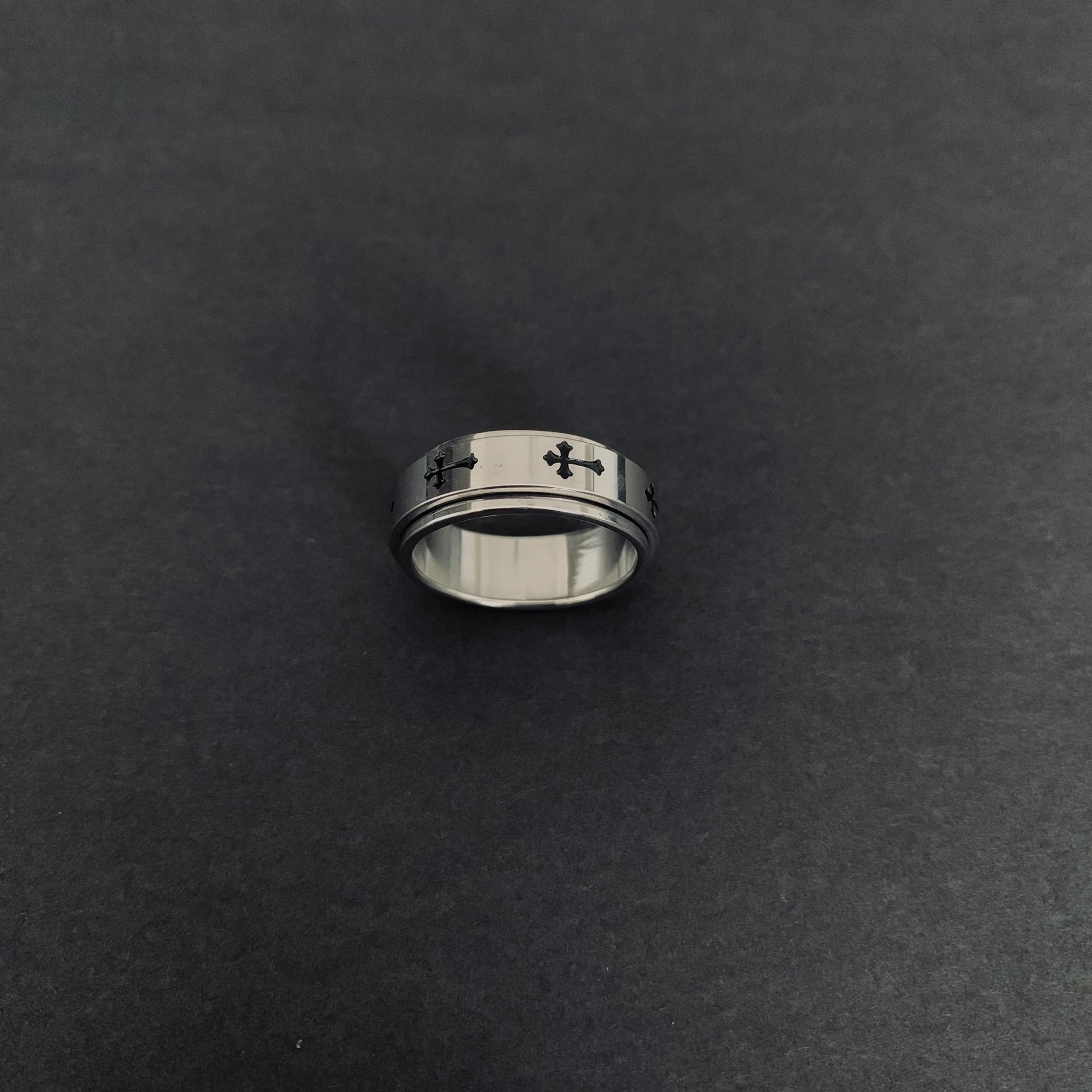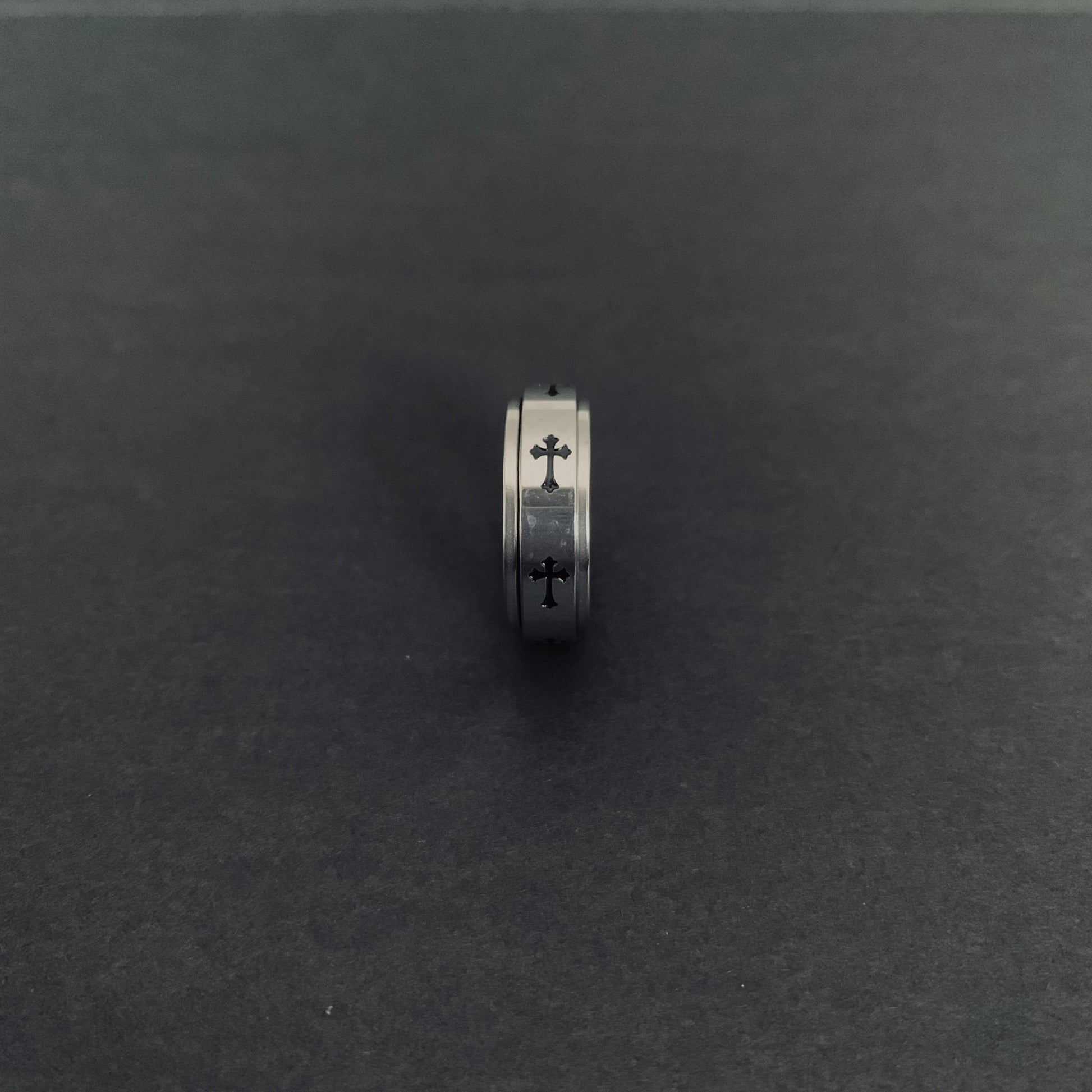 Sleek stainless steel spinner ring featuring a rotating cross design. Built tough for everyday wear, this size 10 ring delivers smooth, satisfying spins whenever you need a moment of focus or calm. Durable construction withstands daily activity while maintaining its polished finish. Perfect for those who appreciate functional style.