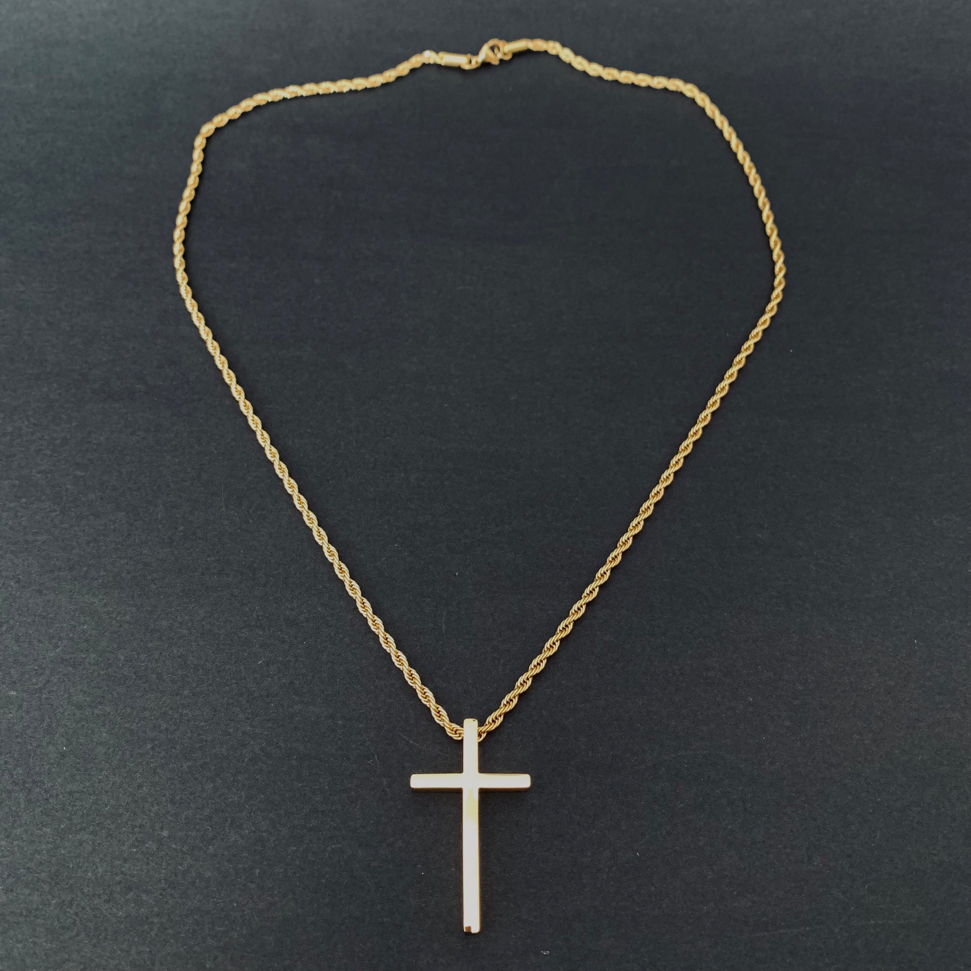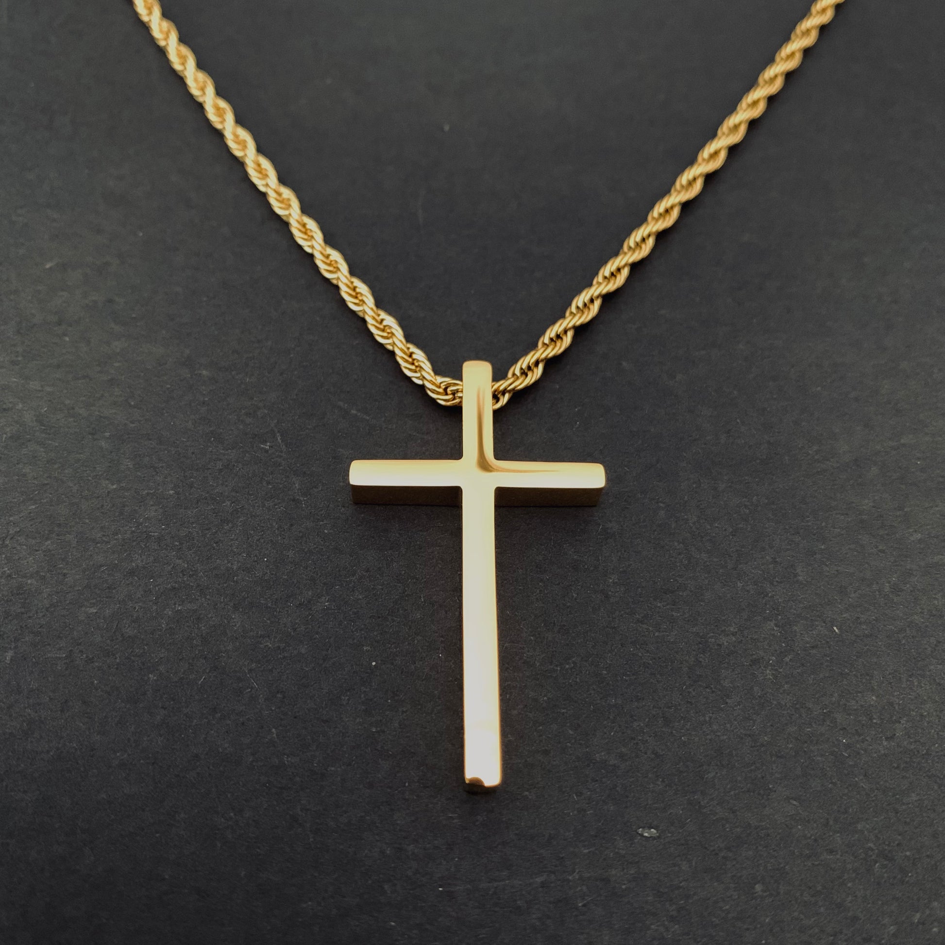 Sleek gold cross pendant crafted from durable 304 stainless steel. This timeless piece combines classic symbolism with modern edge—resistant to tarnish and built to last. Perfect for everyday wear or layering. A versatile statement that works with any style.
