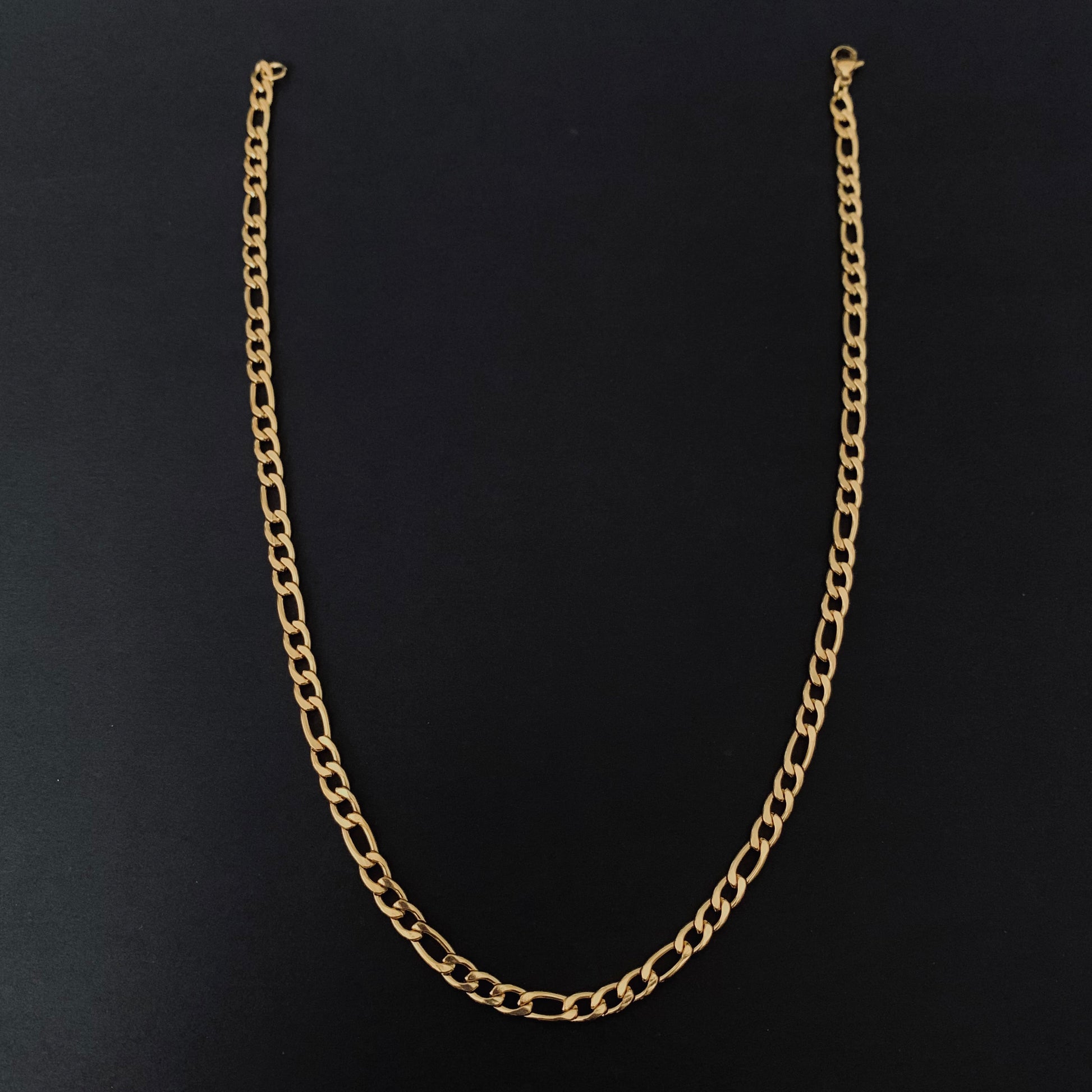 Our Gold Figaro Chain Necklace is the perfect accessory for any occasion. Crafted from high-quality 201 stainless steel, this 450mm chain is both durable and stylish. With a width of 5mm, it adds a touch of masculinity to any outfit. Upgrade your wardrobe with this sleek and timeless necklace.