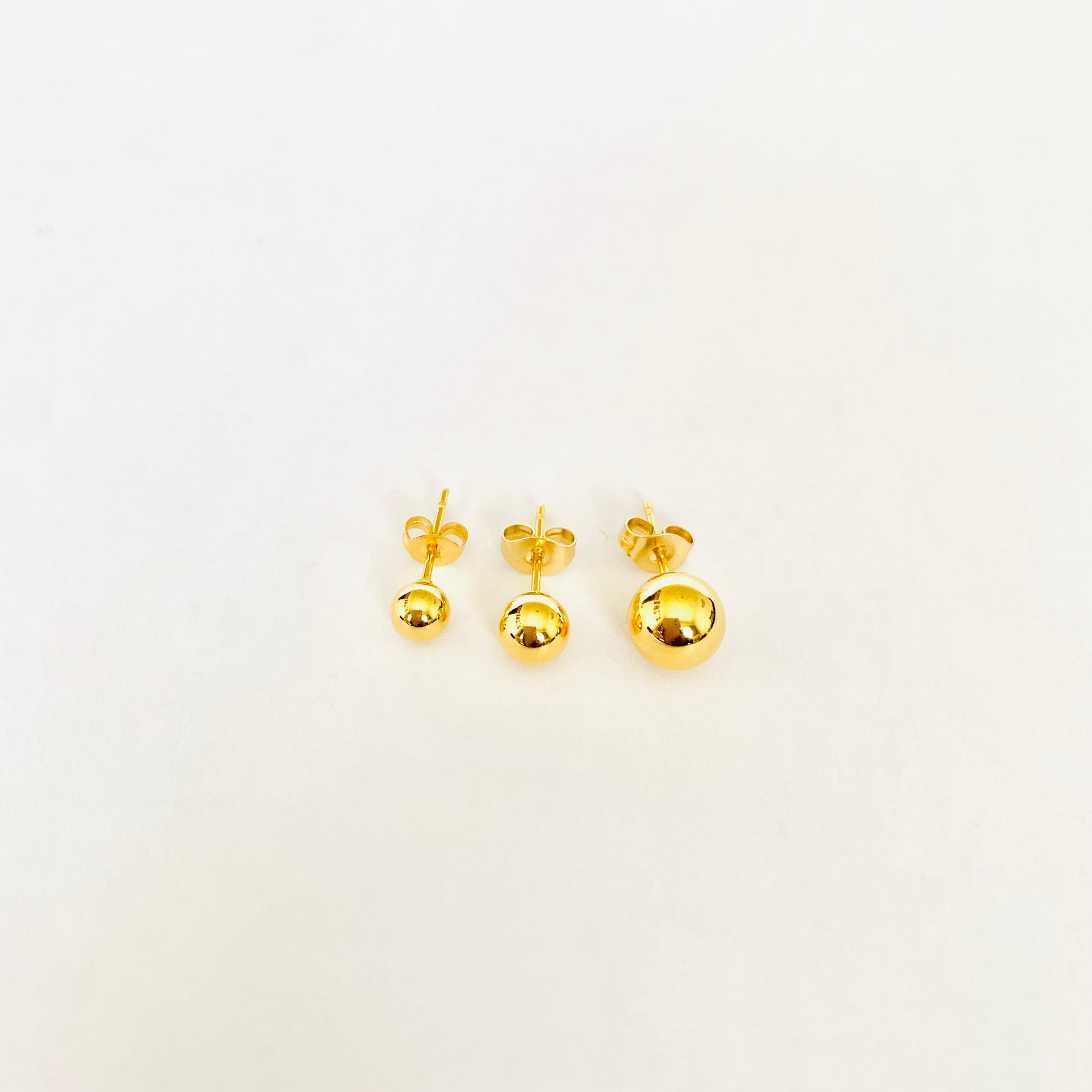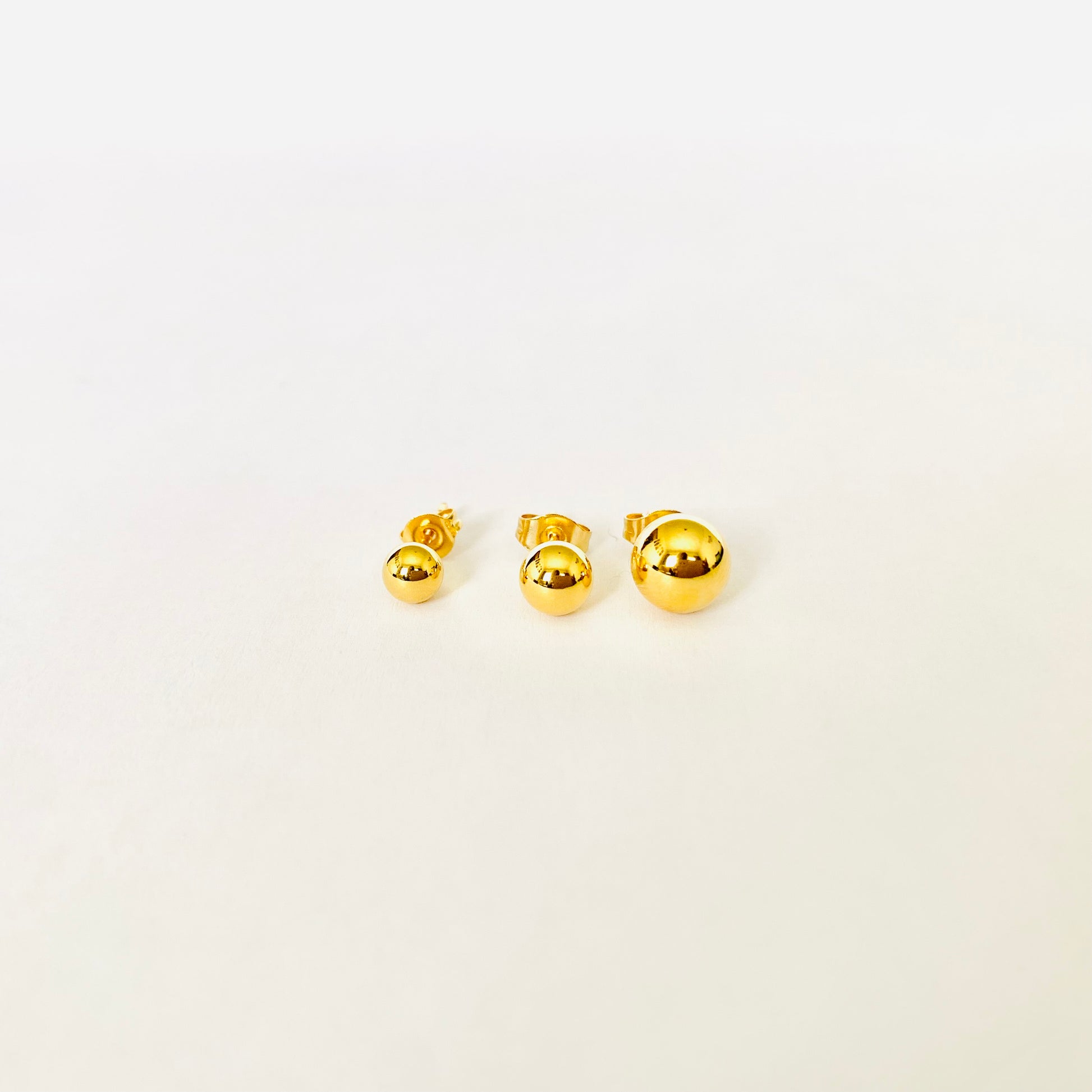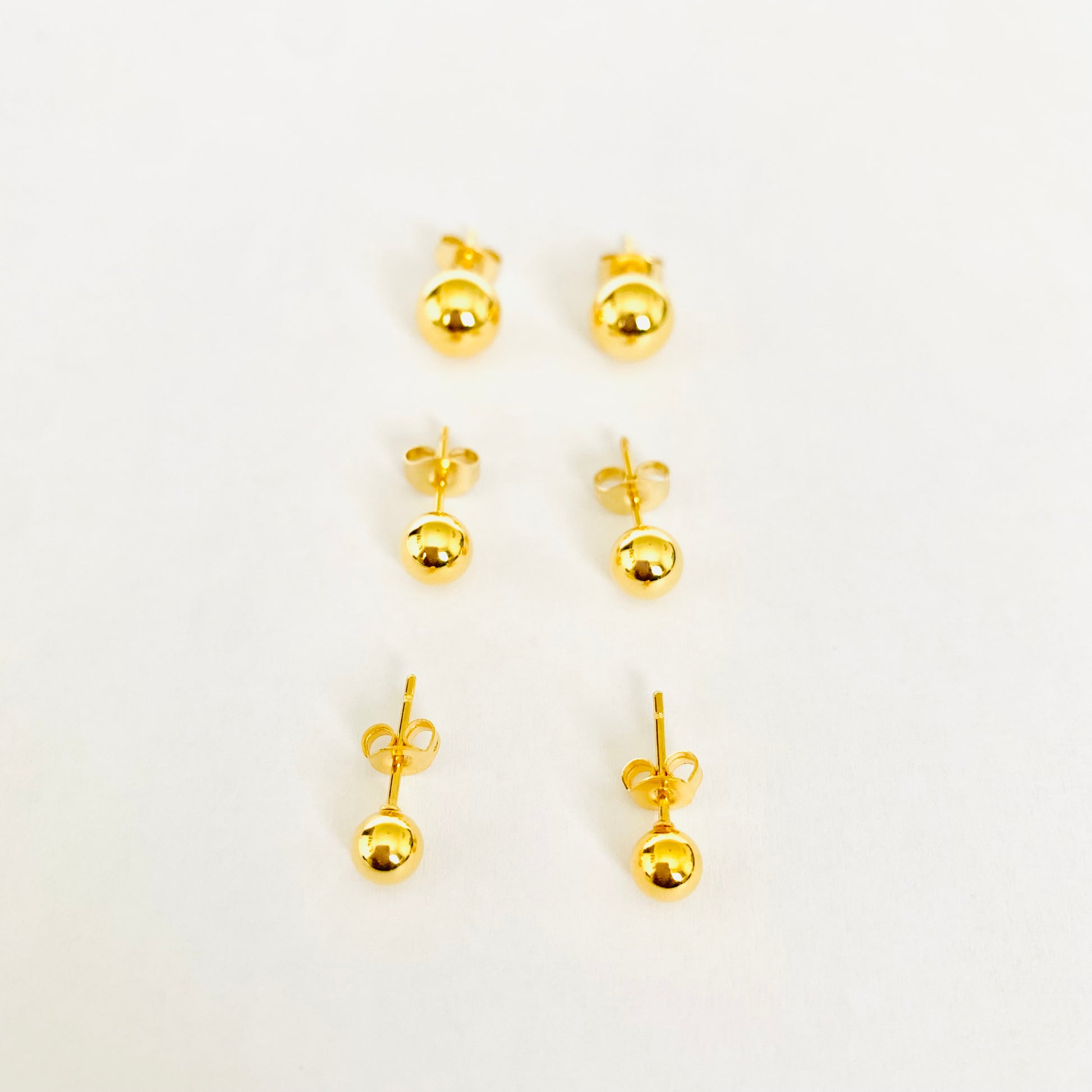 Elevate your everyday look with these timeless gold sphere studs. This versatile three-pair set offers effortless style for any occasion—from the office to weekend outings. Classic, comfortable, and perfect for stacking or mixing with other pieces. A wardrobe essential that works with everything.