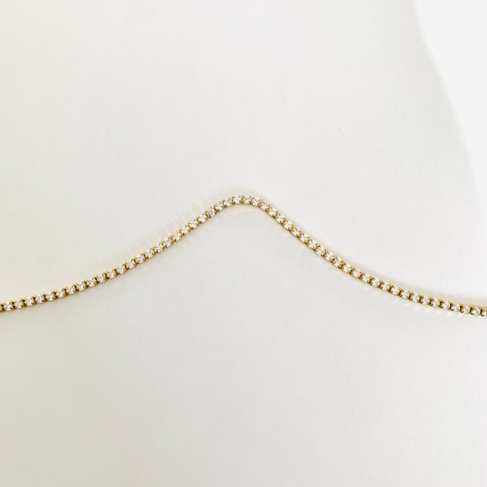 Delicate elegance meets everyday wear with this timeless gold tennis bracelet. The refined 2mm width strikes the perfect balance—substantial enough to make a statement, yet graceful enough for layering or solo styling. Crafted for those who appreciate understated luxury, this piece transitions effortlessly from day to night. A wardrobe essential that never goes out of style.