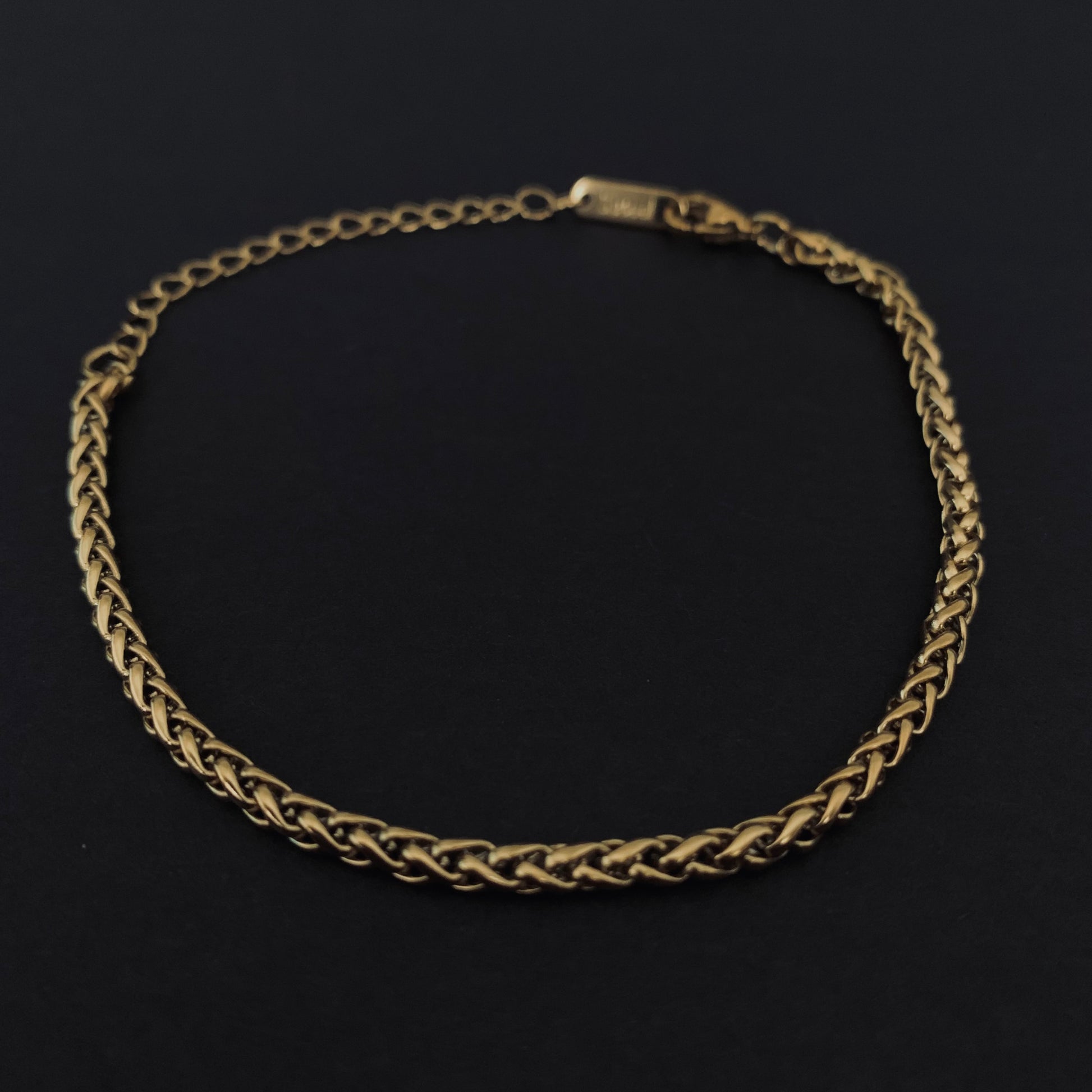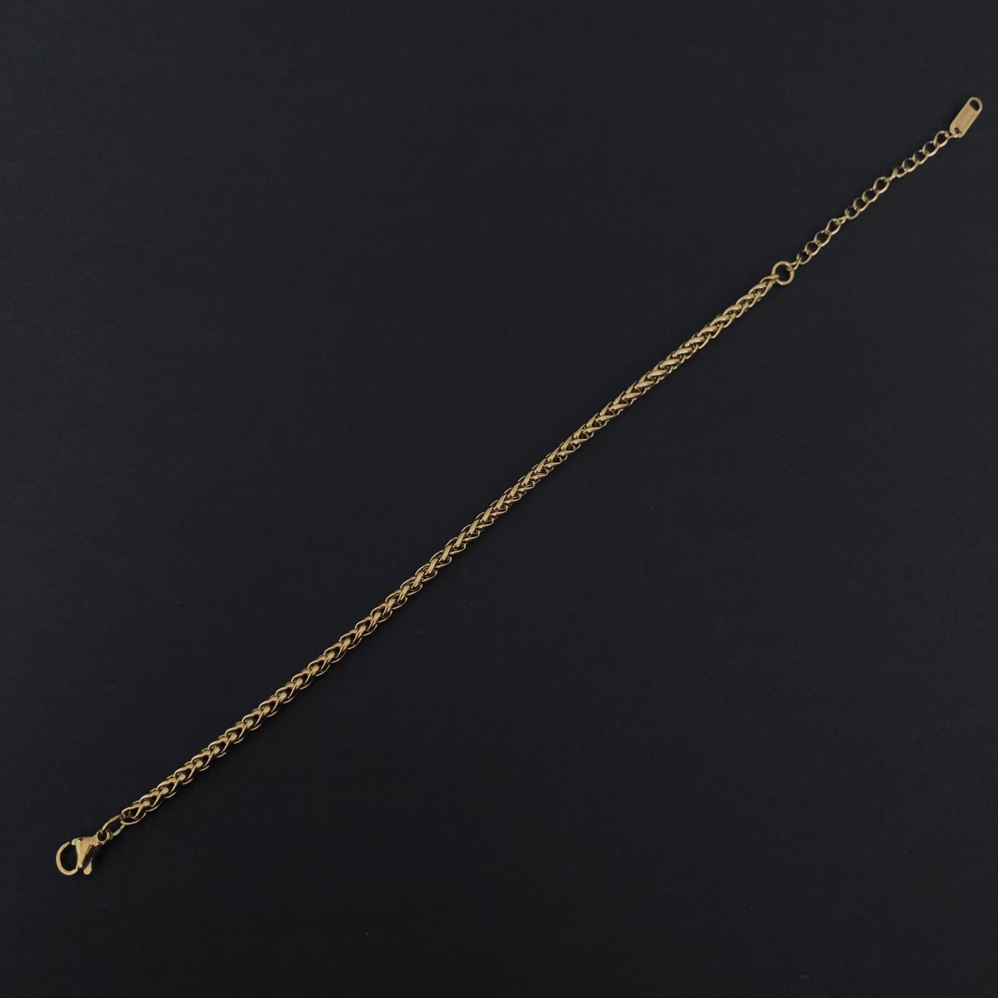 Enhance your style with our Gold Wheat Chain Bracelet. Made with a durable material, this bracelet will add a touch of luxury to any outfit. Perfect for the modern man.