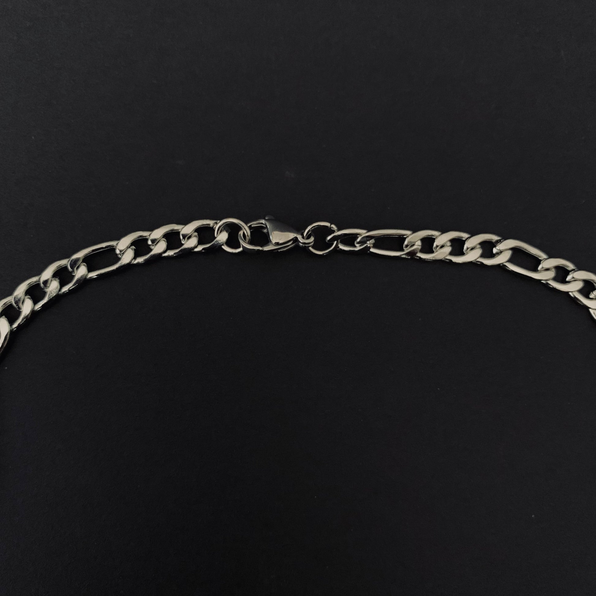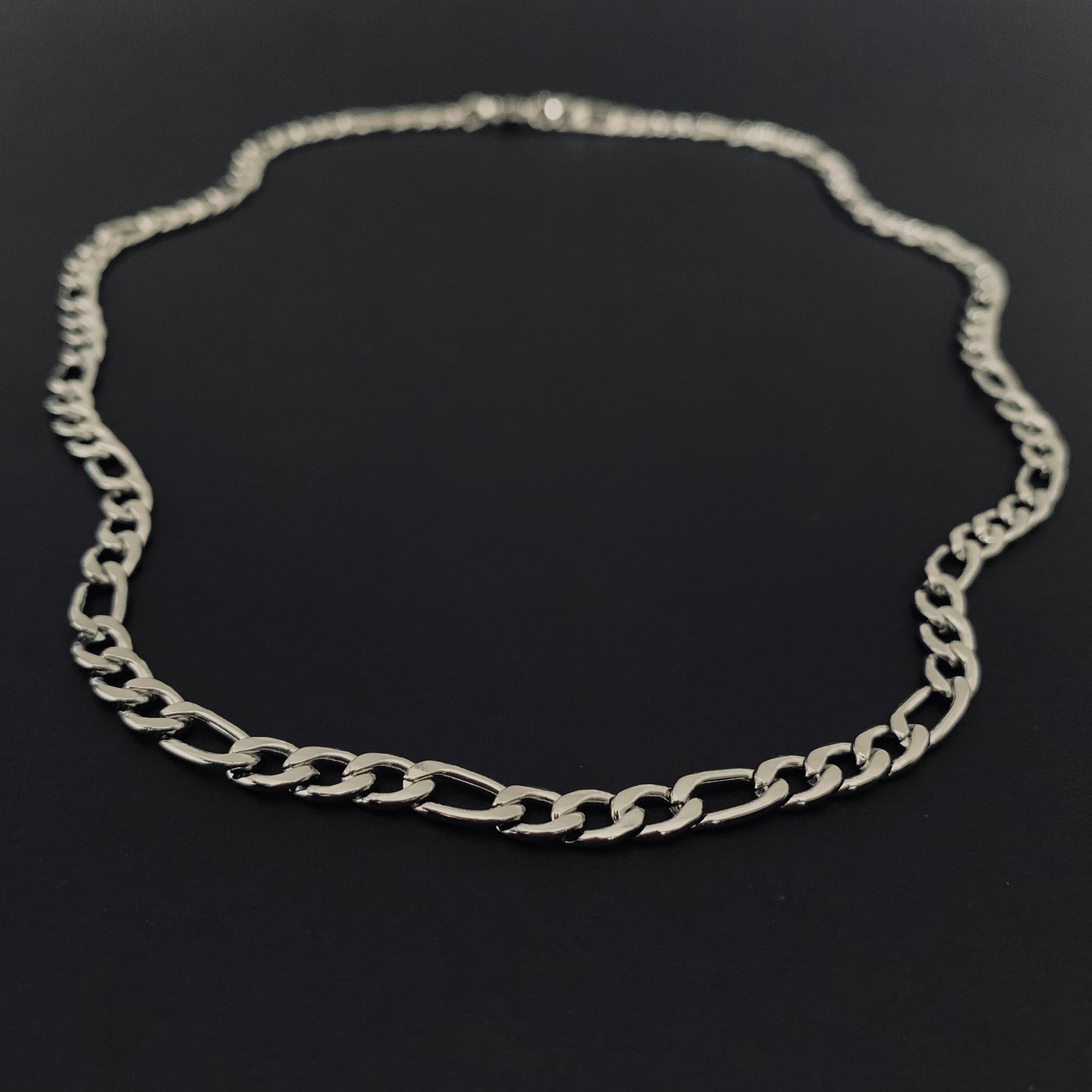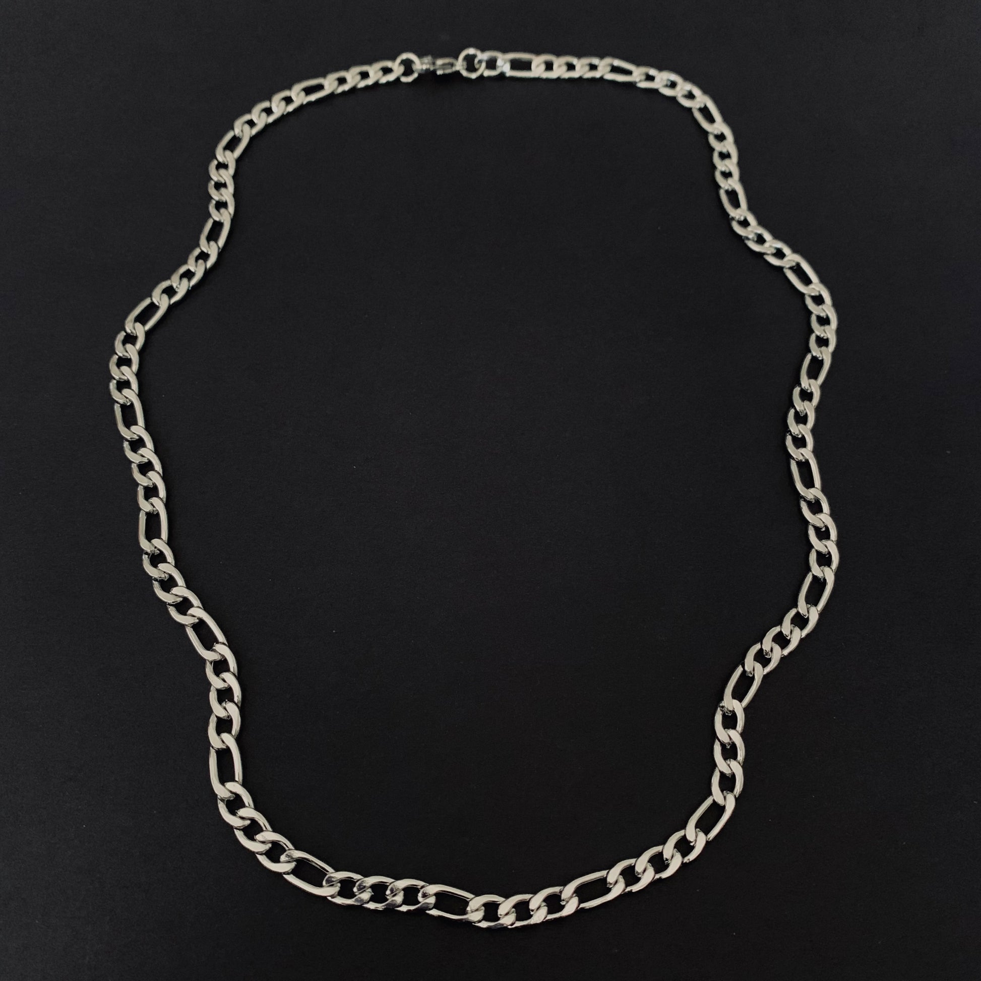 This Silver Figaro Chain Necklace is a statement piece, measuring 500mm in length and 5mm in width. Made with high-quality 201 stainless steel, it is durable and stylish. Perfect for adding a touch of masculinity to any outfit.