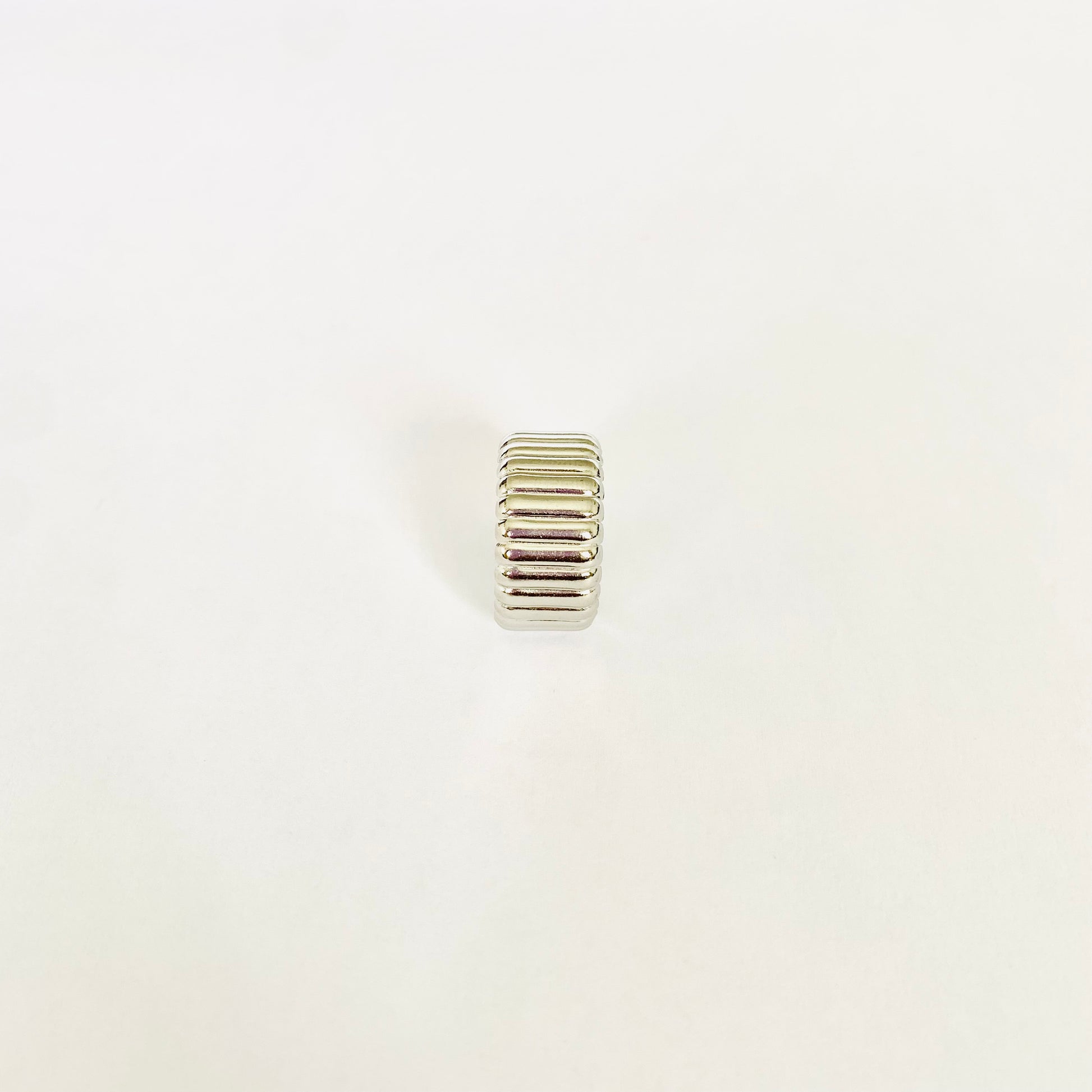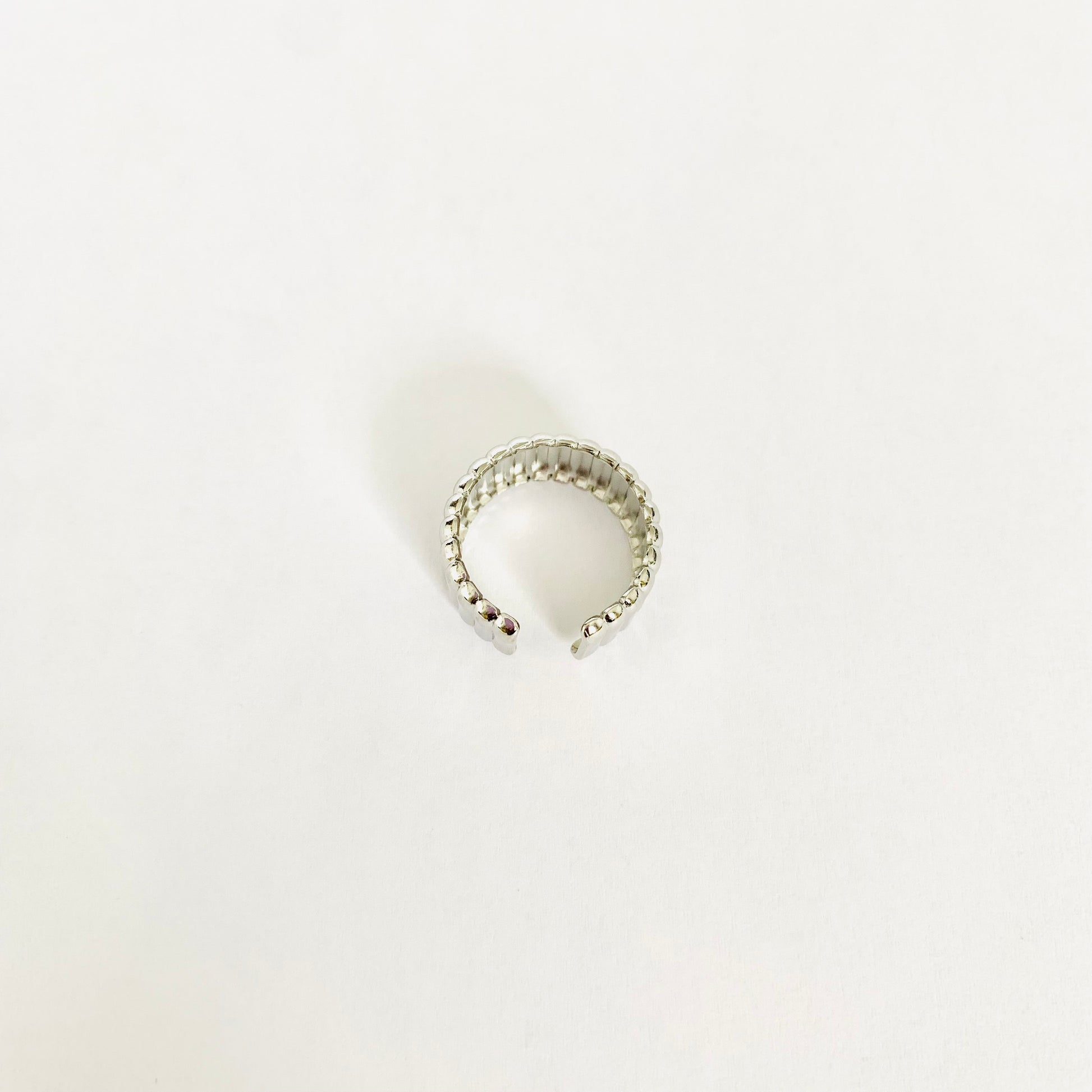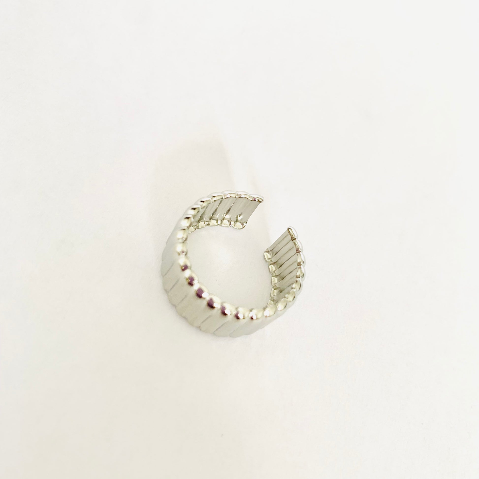 Sleek silver ribbed ring with an adjustable fit for all hand sizes. The textured ribbed design adds contemporary style to any look, while the adjustable band ensures comfort and versatility. Perfect for everyday wear or layering with other rings.