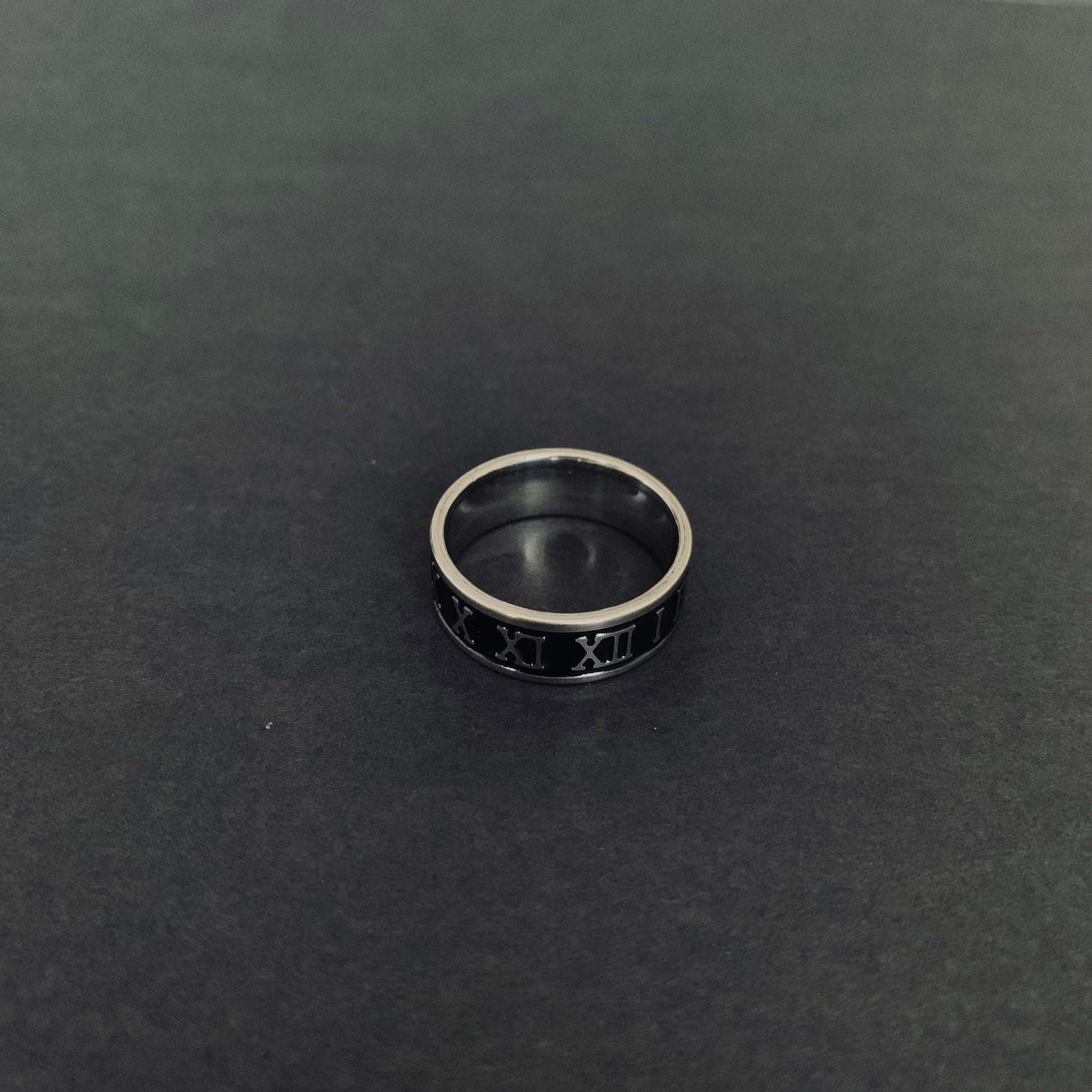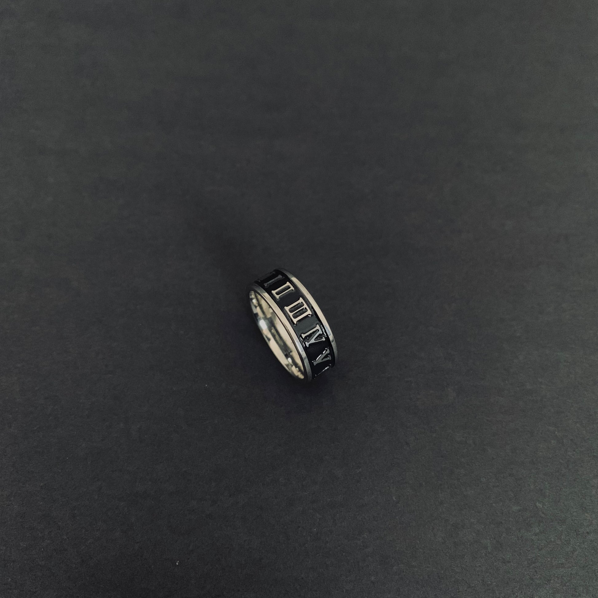Sleek stainless steel ring featuring Roman numerals in a polished silver finish. Built tough for everyday wear, this size 10 ring combines classic style with modern durability. Perfect for the man who appreciates timeless design without the fuss.