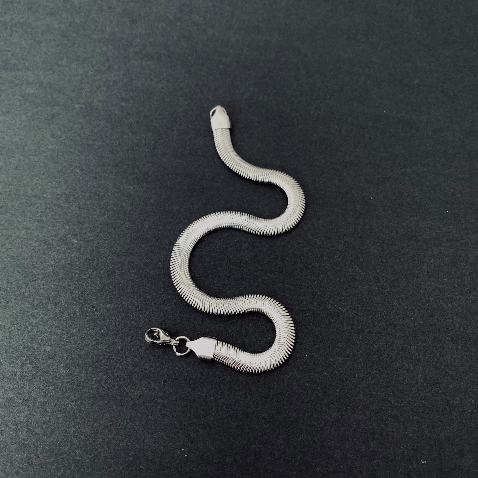 Elevate your style with our Silver-toned Snake Chain Bracelet. The sleek design adds a touch of masculinity to your look, while the durable material ensures long-lasting wear. Enhance any outfit with this versatile accessory.