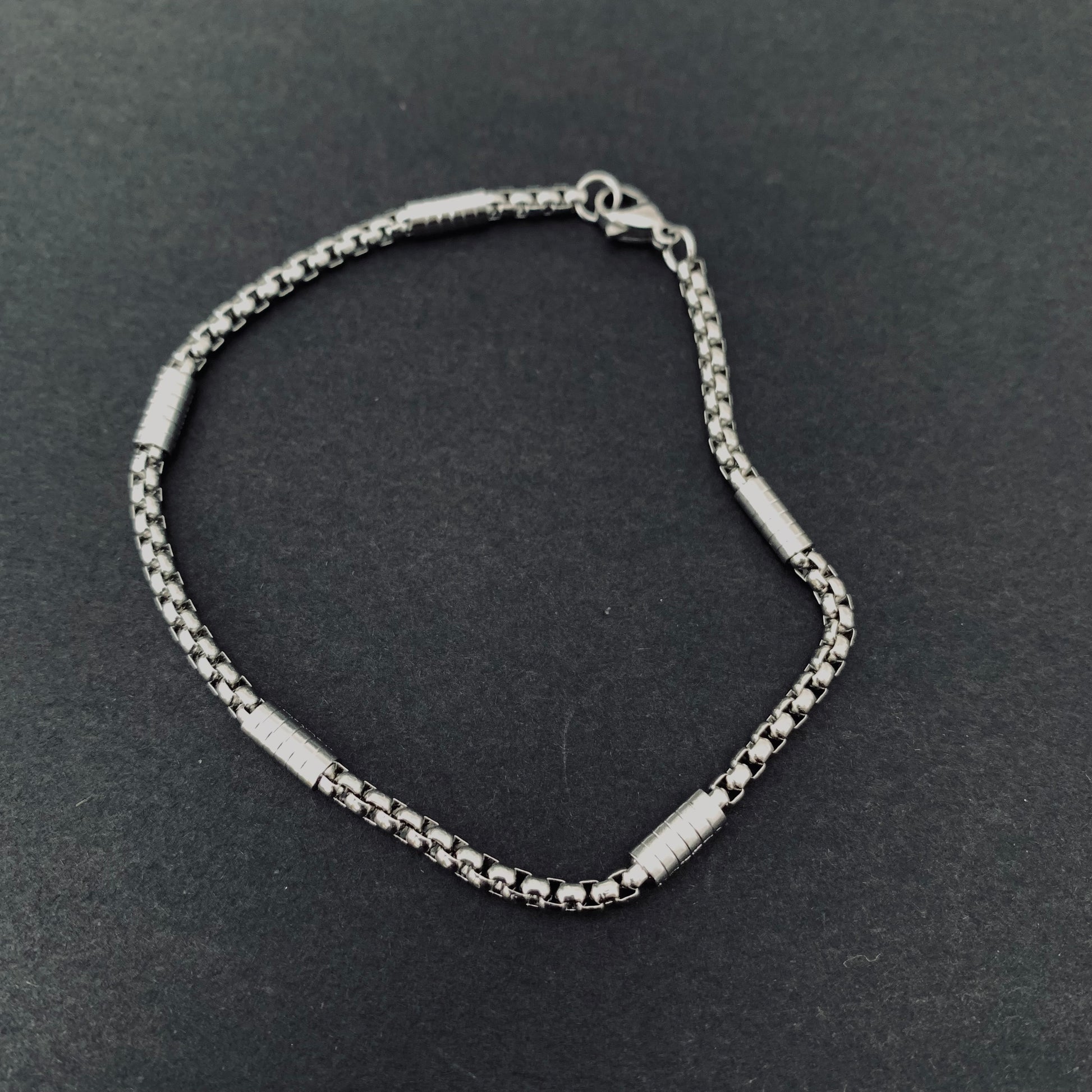 This Silver-toned Link Chain Bracelet adds a touch of sophistication to any outfit. Its sleek design exudes a confident and masculine vibe. Perfect for everyday wear, it is both stylish and versatile. Upgrade your look with this sleek and timeless piece.