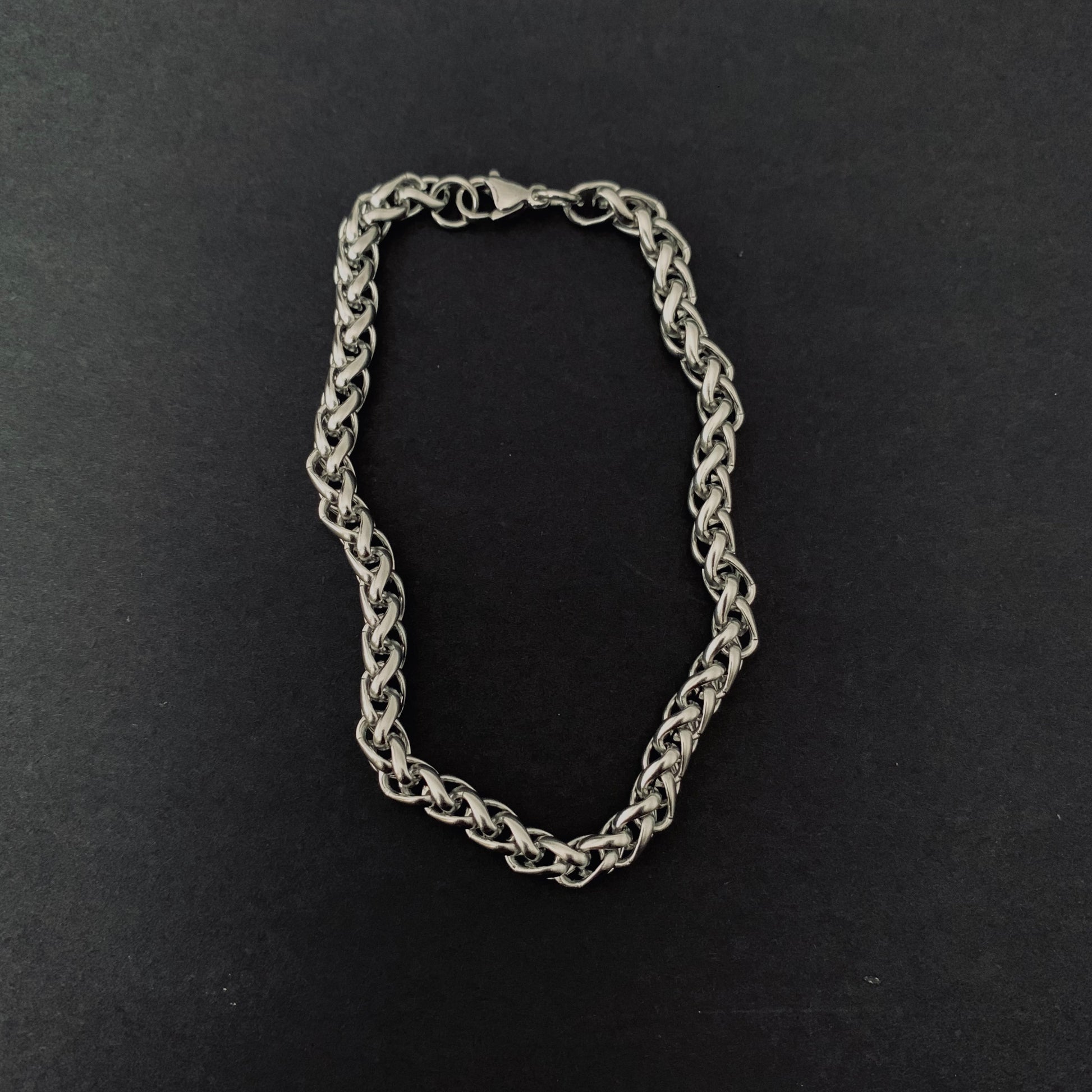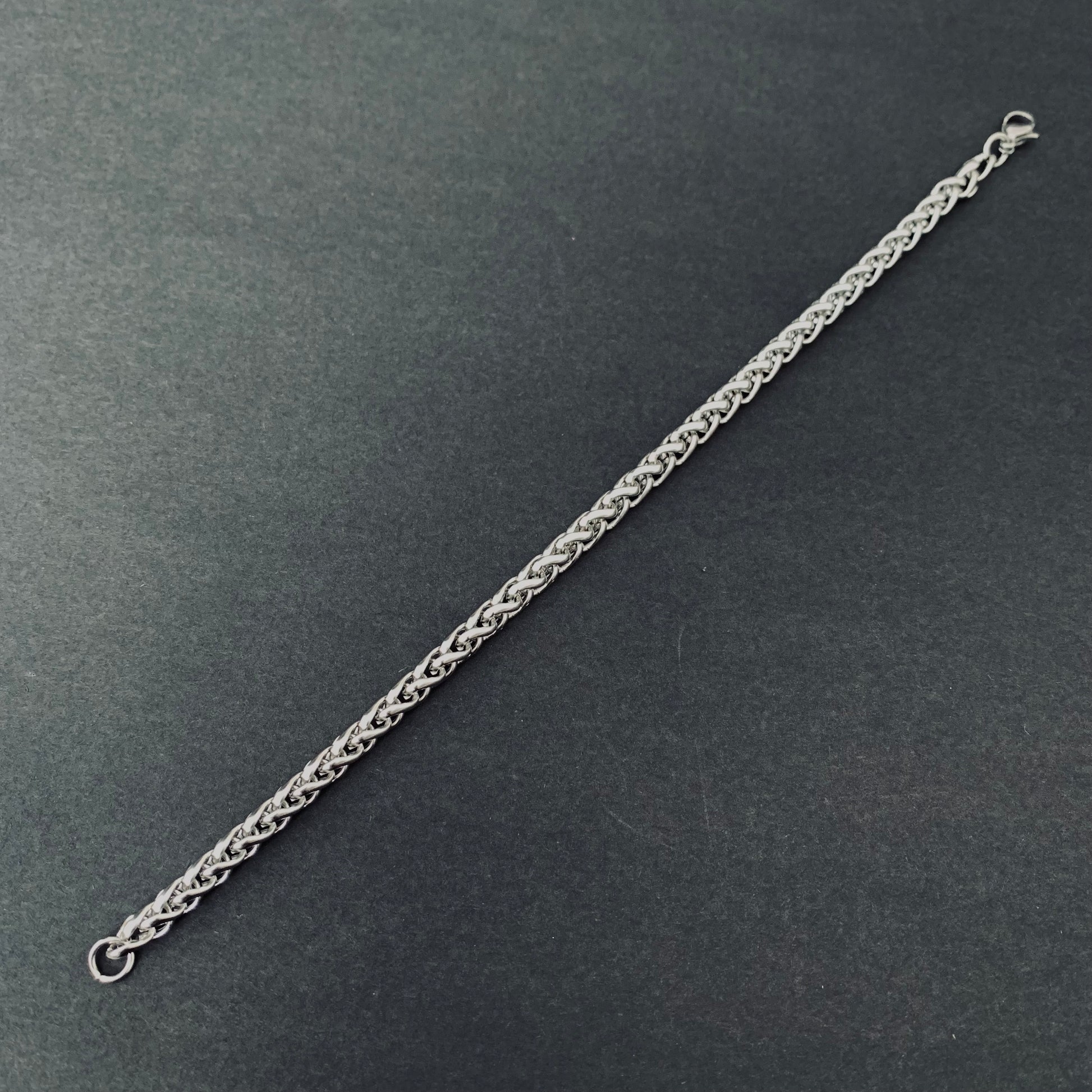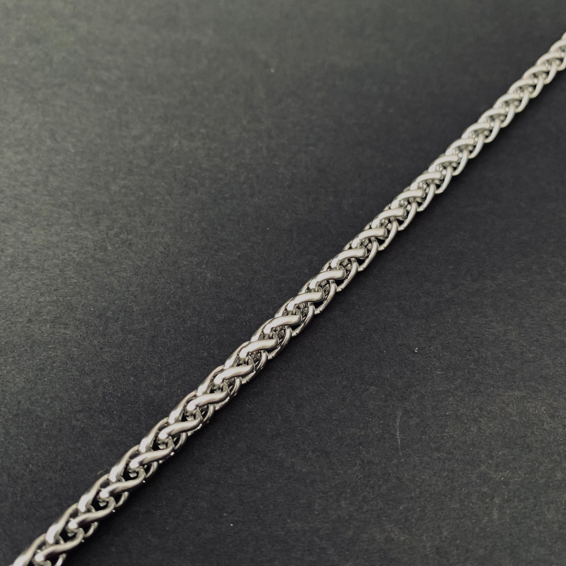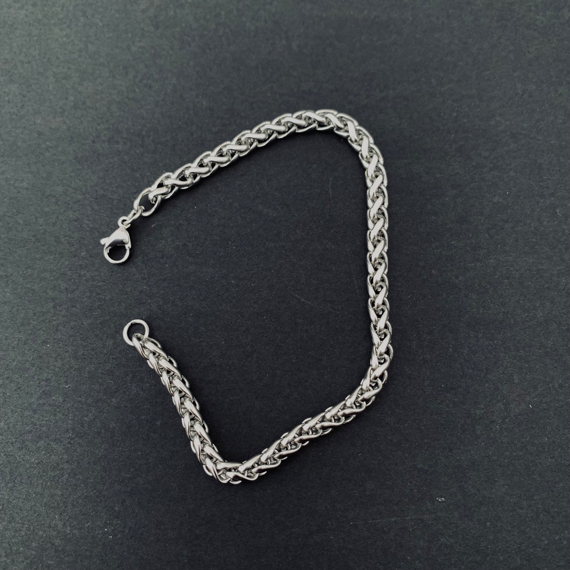 Add a touch of sophistication to your outfit with our Silver Wheat Chain Bracelet. Made with a sleek silver finish, this masculine accessory will elevate your style and make you stand out. Perfect for any occasion, it's the perfect addition to your jewelry collection.